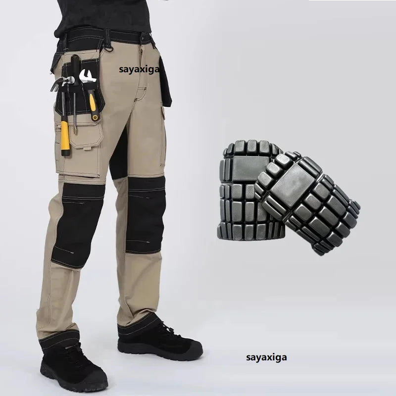 Mens Working Pants With Knee Pads Multi Pockets Cargo Pants Work Pants For Men Workwear Cargo Trousers Welding Repairman Uniform